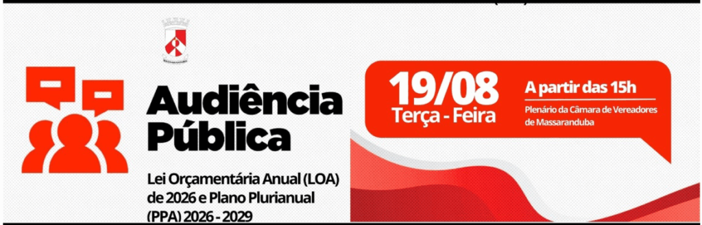 A prefeitura vai utilizar nesta terça-feira, dia 19, às 15h, o auditório da Câmara de Vereadores para apresentar o Plano Plurianual (PPA) 2026–2029 e a Lei Orçamentária Anual (LOA) de 2026.
